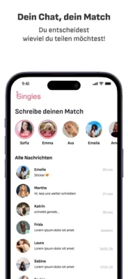 With iSingles, communication is simple. In the chat area, you can not only send messages, but also pictures, videos, and emojis. You can also send small gifts to make your match happy and show your interest. Everything you need for exciting and successful chats is available on iSingles.