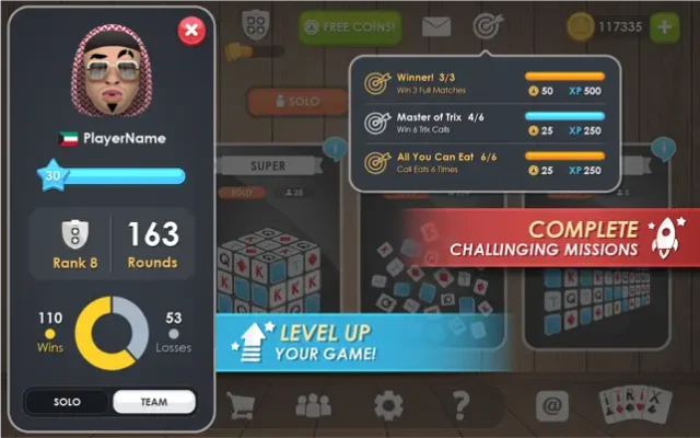 Diwaniya Labs is proud to present iTrix: the mobile version of Trix (Trex), a competitive four-player card game offered in its classic form as well as some more interesting game types! Players can join up together in competitive multiplayer games, or play on their own against our intelligent computer players.