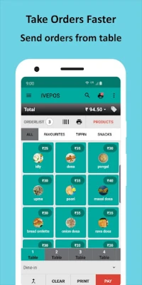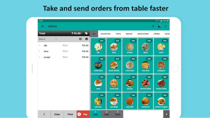 Waiters can conveniently take order from customers on the table using their Android smartphone or tablet and send kitchen order ticket (KOT) directly to the kitchen.