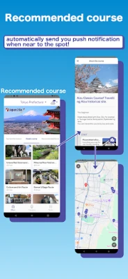 ・Recommended sightseeing routes are shown in the window, and the app sends you a push notification when you are nearing spots.