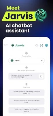 - Meet the Personalities: Jarvis isn't just a chatbot anymore. Delve into a richer, more tailored experience with 12 Unique Personalities! Whether you're yearning for scholarly insights from the Professor, crafting a ballad with the Musician, exploring ancient tales with the Historian, or seeking wellness guidance from the Therapist – there's a Jarvis for every mood and mission.