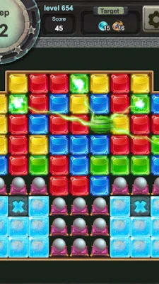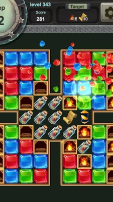 There are many elements in the level content, such as wooden boxes, ice cubes, vines, gold trophies, crystal balls, bombs, pendants, bookshelves, etc