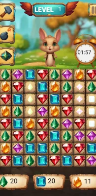 Dive into the enchanting world of Jewel Rush, a delightful match-3 puzzle game with a charming bunny theme! Join our adorable rabbit friend on a sparkling journey through colorful levels filled with dazzling jewels. Swap, match, and crush your way to victory in this completely free game!