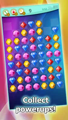1. Tap (match) 2 or more identical color jewels to eliminate them.
