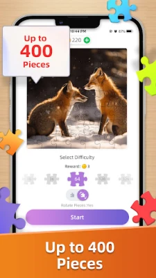 • From 36 to 400 picture puzzle pieces. The more pieces, the harder your jigsaw puzzle game becomes