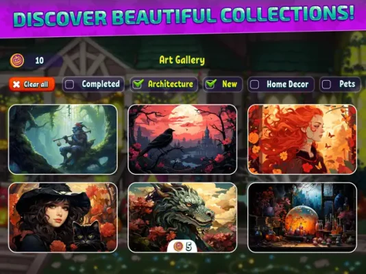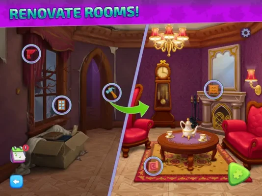 Magic Jigsaw Puzzle game: Story of Witch's adventure in Ghost Family Mansion. Renovate & decorate the old house and reveal the mystery witch's secrets