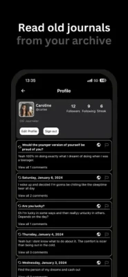 • Your daily journals stay on your profile, so you can always go back and read old entries.