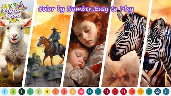 Joyful Color is a free color by number game for people of all ages and lifestyles. Featuring tons of inspiring pictures, you will enjoy a relaxing and interesting experience.