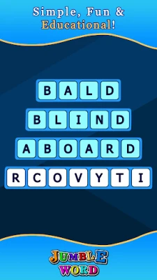 Welcome to Jumble Word, the game that aspires to become the new favorite word game. The aim of the game is to find all the jumble words. The words on each puzzle are not related to each other. The new word game allows you to search for thousands of words and so you can easily improve your vocabulary, concentration, and spelling skills! Jumble Word is and will always be free and waiting for you to play!