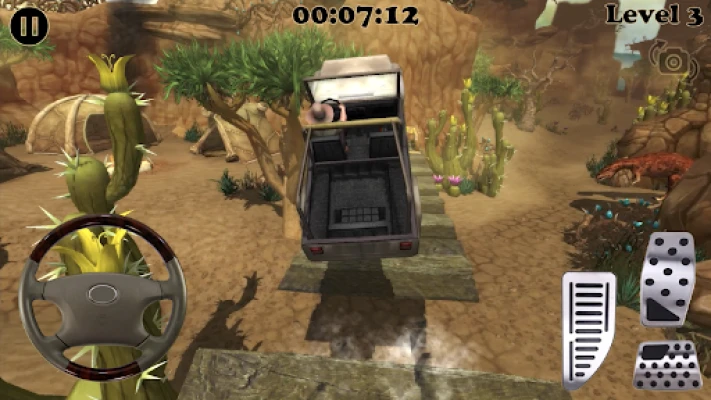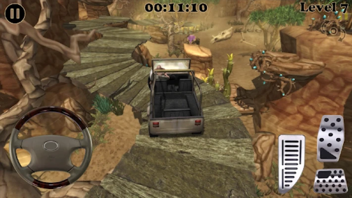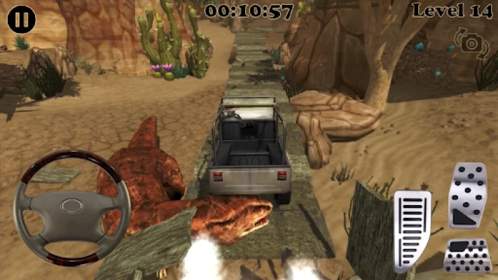 Thrill Seeking and Challenging fun Off-road Car Driving game, Dinosaurs are about and are dangerous. Control your off-road vehicle as you mountain climb through each level, make jumps with this realistic simulation. Try avoiding falling off the edges of the path as you complete the many stages. No time to take in the spectacular Jurassic scenery, try spotting a Dinosaur that if it finds you will try to knock you off your path.