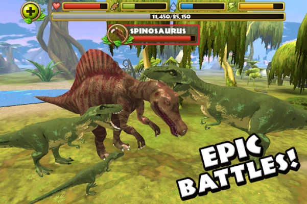 + EPIC BATTLES - Use your powerful jaws, ferocious roar, and swift speed to catch a tasty snack and fight dangerous foes!