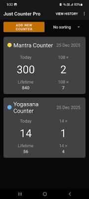 12. Multiple Counters : You can create multiple counters as per your need. Each counter has it's separate history, theme color and counter settings like haptic feedback and cycle/mala length.