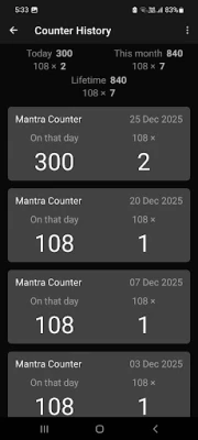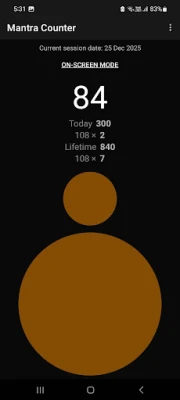 10. Mala counter : It shows how many malas (cycle of 108 counts) you have counted.