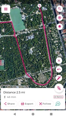 Just draw your route on the map merely swiping your finger and get the route total distance right away. As easy as drawing it. No more headaches about where to go next to reach those 10 miles you were planning to run. No more stress finding the right path to walk your dog. Quick and easy to use, just draw it!