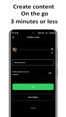 Justtalk lets you build a following, get likes and connect with people who are truly listening. Spend less time glued to your screen and more time doing what you love while you listen to the short casts that interest you. It's a fresh, new way to connect with the world. Don't text, JustTalk.