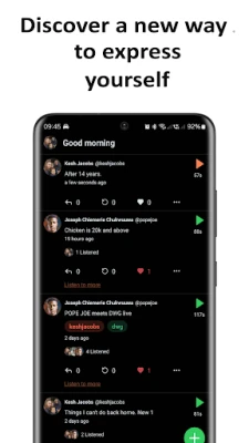 A social media with your voice at the centre. JustTalk is an audio-only social media platform designed for you to express yourself fully. Share your ideas, stories and insights in short 3-minutes voice notes. There's no camera, so you can speak freely and reduce the chance of being misunderstood.