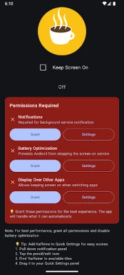 Kaffeine is the lightweight and easy-to-use app that keeps your screen awake for as long as you want — no more interruptions during reading, cooking, coding, watching tutorials, or long downloads.