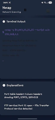 Real-time simulated Kali Linux terminal
