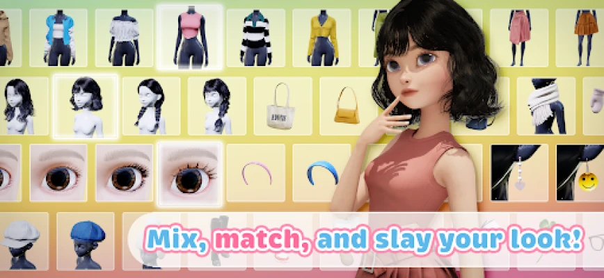 Create your own character. Choose from various facial features and customize yourself with outfits and accessories.
