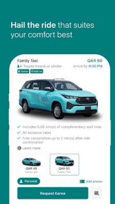 Karwa services are synonyms to public transport in Qatar. Try our Karwa services through smart phones and get hassle free taxi and limousine services. Request your next ride through Karwa app and get picked up by the nearest available Karwa partner in the shortest period of time.