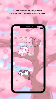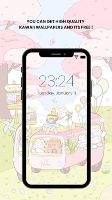 Kawaii Wallpaper HD 4K is an application that offers a collection of high-quality wallpapers for anyone who loves cute, pastel, and aesthetic kawaii themes. Featuring adorable characters, sweet elements like strawberries and bows, and soft pink tones, this app is perfect for brightening up your phone screen.