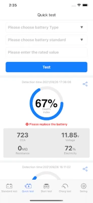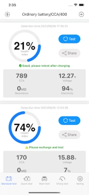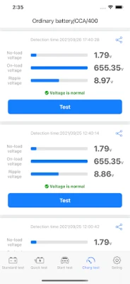 3. Support standard, fast, start, and charging tests, one-key generation of test reports, one-key sharing, etc