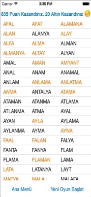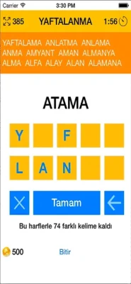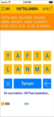 Türetilebilecek en uzun kelimeyi bulduğunuzda ekstra puan kazanırsınız.