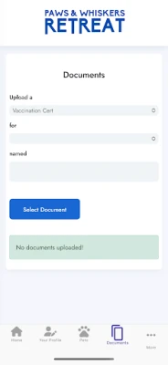 Document Upload: Upload important documents such as vaccination records and medical histories directly to your account. This ensures your pet professional has all the necessary information to provide the best care for your pet.