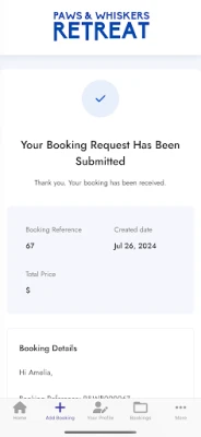 Our app is designed with a user-friendly interface to make managing your pet's care as stress-free as possible. Download now and take control of your pet's booking experience with ease and confidence!