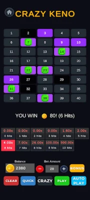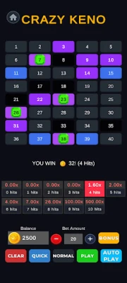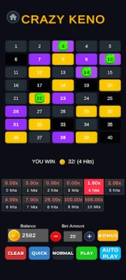 Crazy Keno Royale brings you classic keno and fast-paced crazy keno modes