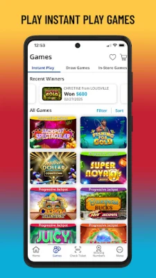 Fuel your imagination with the official Kentucky Lottery app. Play Instant Play Games or your favorite jackpot games, find a Kentucky Lottery retailer, save your favorite wagers, create a virtual play slip, scan tickets to see if you're a winner, enter second chance promotions and check your lottery numbers anytime, anywhere.