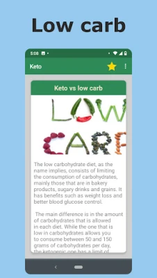 In the application you can learn the basics, mainly for beginners who are interested in these types of low carb diets. Various topics are included such as: