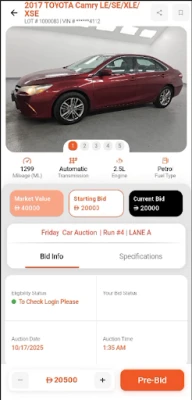 * Real-time updates on car status, next items, and bidding activity.