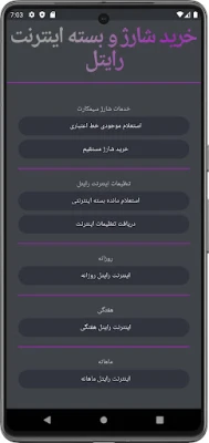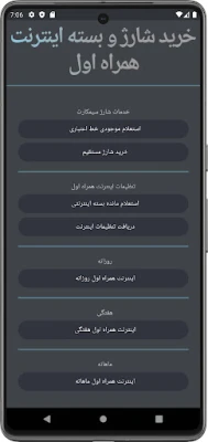 خرید ، سفارش و مشاهده حجم باقی مانده بسته های اینترنتی و کارت شارژ بصورت بسیار ساده ، زیبا و سریع از هر سه اپراتور ایرانسل ، همراه اول و رایتل