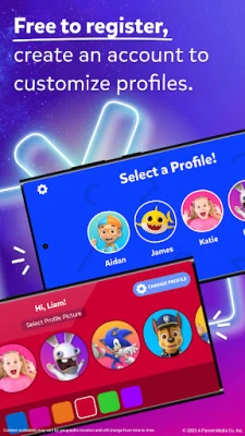 - Create your own profile, customizable by color, avatar, title selection, and age group set parental control screen time limits
