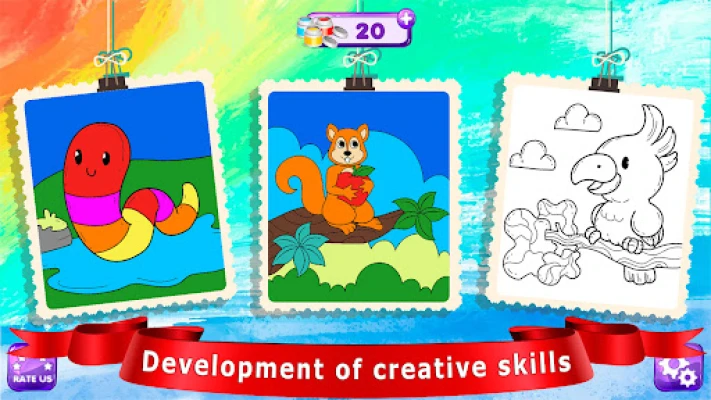 Educational coloring games for children will allow the child to have fun with such an interesting activity as creating bright and colorful pictures instead of a black and white template. At each level of the memory games, along with a black and white template, a sample will be given, according to which it must be colored. The child will be able to show imagination and color the proposed drawing as he likes, but the main goal of the learning game for kids is to repeat the combination of colors, as shown in the sample. For a correctly colored drawing, the child will receive paints as a reward, for which he will be able to open new fun coloring games for kids.