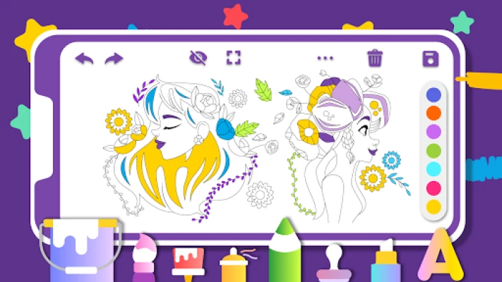 Application is free for drawing, sketching and using limited puzzle and stamps to create marvelous pictures and coloring own created pictures.