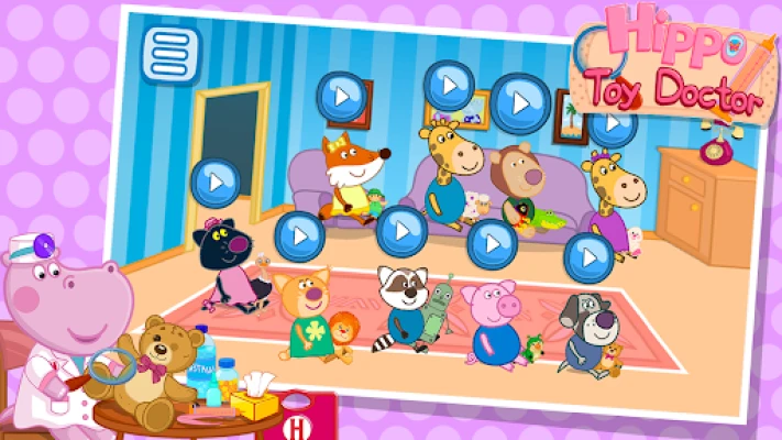 Hippo is a kids doctor today, but not the usual one! She has opened her hospital to heal dolls and different toys of her friends. What could be better for girls?! Toy veterinary clinic and ambulance opens in the very morning! Our hospital is going to heal all the broken dolls, because the main specialist is the most experienced doctor in the world, vet Hippo! And if you don't have any slightest idea what veterinary clinic, hospital for dolls or ambulance mean, then you must play all these interesting games. Hours of happiness, exciting kids stories and, of course, various interesting games for kids are waiting for you.