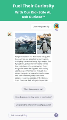 With Ask Curioso™, our exclusive kids' AI resource, kids can ask factual questions and get factual answers in return.