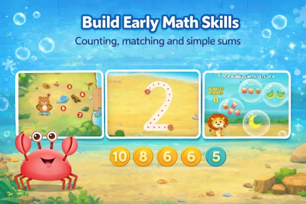 Practice counting, number tracing, patterns, dot-to-dot puzzles, addition, subtraction, and other early math skills.