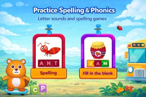 Learn common 3-letter and 4-letter words by filling in missing letters and unscrambling words in fun spelling activities.