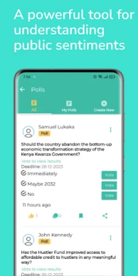 Enables users to rate the performance of political leaders and institutions and conduct opinion polls to gauge public sentiment on various topics.