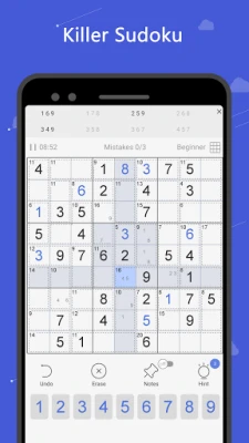 If you are interested in playing number games or math puzzle games, this Killer Sudoku is exactly for you! Killer Sudoku may be a little bit harder than a classic sudoku puzzle game. But we offer 9 balanced difficulty levels for beginners and advanced players. Even you didn't play Killer Sudoku before, you'll become a Killer Sudoku master in no time.