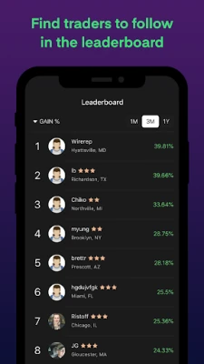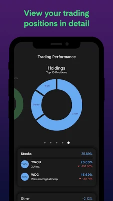 Kinfo tracks your trading performance and lets you view top traders portfolios.