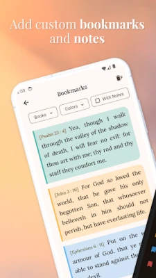 - Enhanced Study Tools: Add notes and colorful bookmarks to verses and review your KJV Bible reading history.