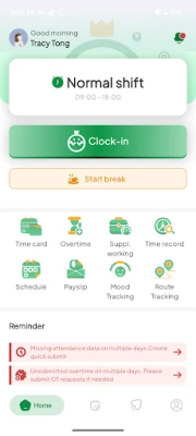 - Submit requests (OT, leave, shift, supplemental) instantly