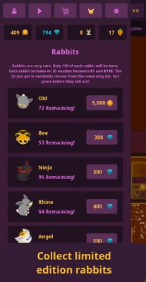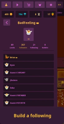 Features • 150 campaign levels • Endless community levels • Sync progress across devices • Spectate other players • Collect limited edition rabbits • Follow your favorite level builders • Create your own levels • Build a following • Earn tips from other players • Watch people play your levels • Unlock new items