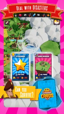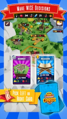It’s simple to play. Every turn, you get a choice of two cards to pick from. Make a choice… and live with your decisions! Plan ahead and strategize to maximize your resources. You will need to keep a close eye on your Empire's Food, Gold, Science and Power.