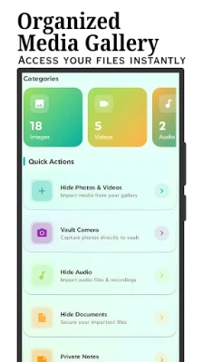 Capture photos directly into your private vault using the built-in secret camera without them ever appearing in your public gallery. This feature lets you take sensitive pictures that go straight into your hidden photo locker, bypassing your device's gallery entirely and leaving zero traces.
