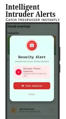 Kiwi Vault's intelligent intruder detection feature automatically captures selfie photos of anyone entering the wrong password into your photo locker. This break-in alert system uses your front camera to photograph and log every failed unlock attempt. Combined with brute force protection that auto-locks your vault after multiple incorrect attempts, your hidden gallery stays secure even if someone discovers the app.